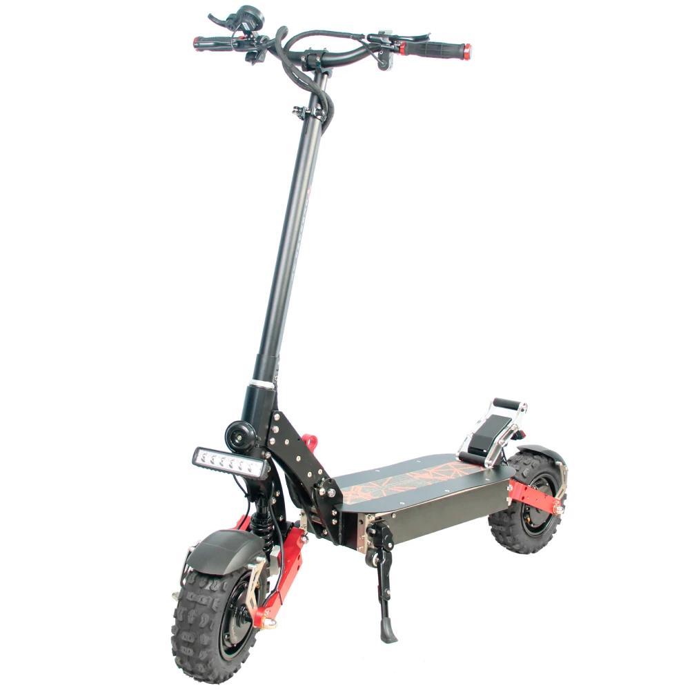 YOKAMURA GS имеет два двигателя общей мощности 2*2000 Вт, он развивает максимальную скорость 100 км/ч, на дорогах общего пользования электросамокат по скорости не уступает автомобилям. Гидравлическая и дисковая тормозная система позволяют контролировать движение такого быстрого агрегата. За счет емкого аккумулятора в 30 А*ч, транспорт на одном заряде проедет 120 км пути. Вы можете отправиться в поездку, не переживая за уровень заряда батареи.