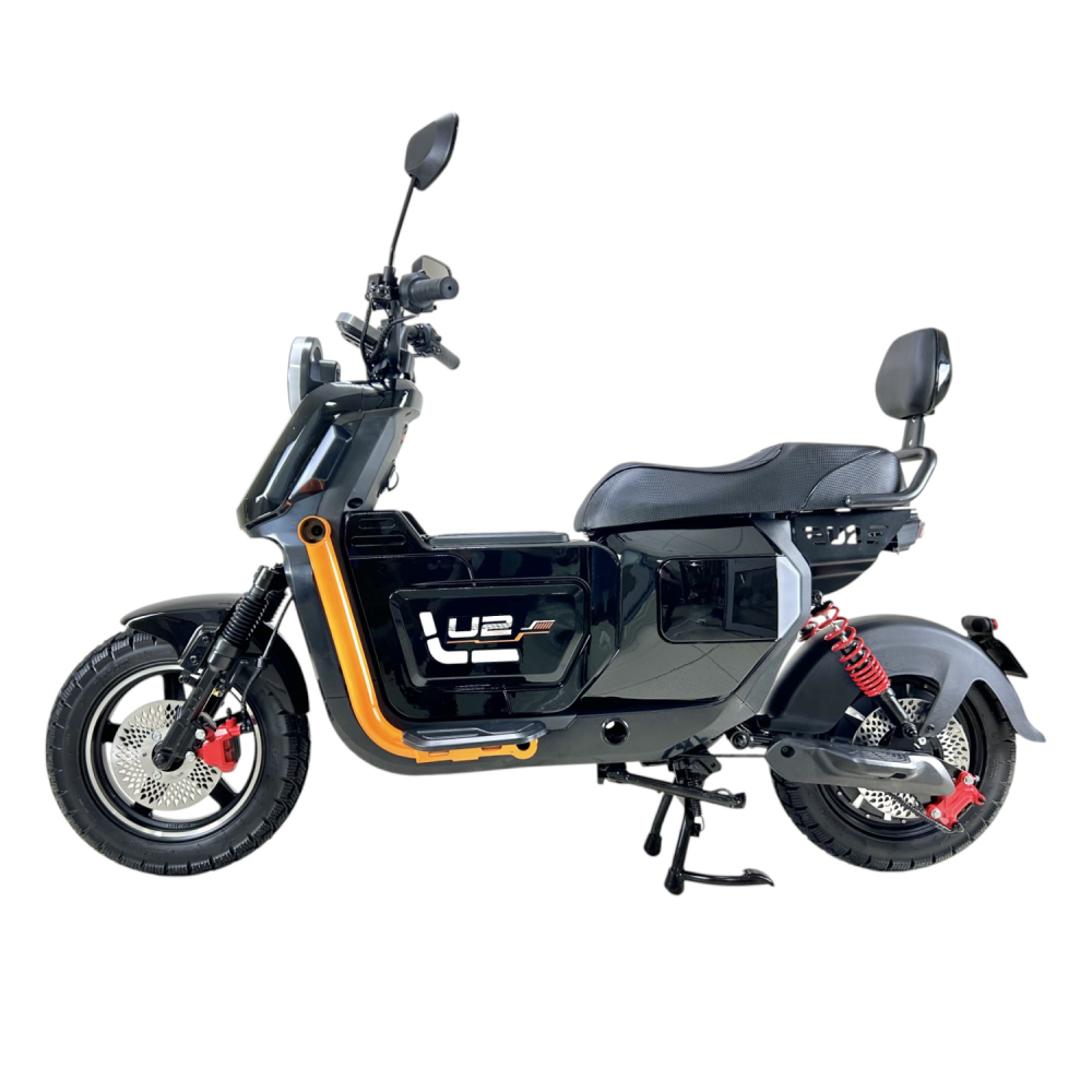 Электроскутер GT U2 PRO в черном исполнении — это сочетание мощности и элегантности. Двигатель 1500W и максимальная скорость 70 км/ч позволяют уверенно передвигаться по дороге. С запасом хода до 70 км и аккумулятором 30Ah, вы можете наслаждаться длительными поездками без подзарядки. Скутер поддерживает нагрузку до 160 кг, что позволяет взять с собой пассажира, для которого предусмотрены отдельные подножки. Дисковая гидравлическая тормозная система обеспечивает надежное торможение, а подвеска спереди и сзади сглаживает неровности дороги. Большая фара освещает путь в темное время суток, а современный дизайн подчеркнет ваш стиль.