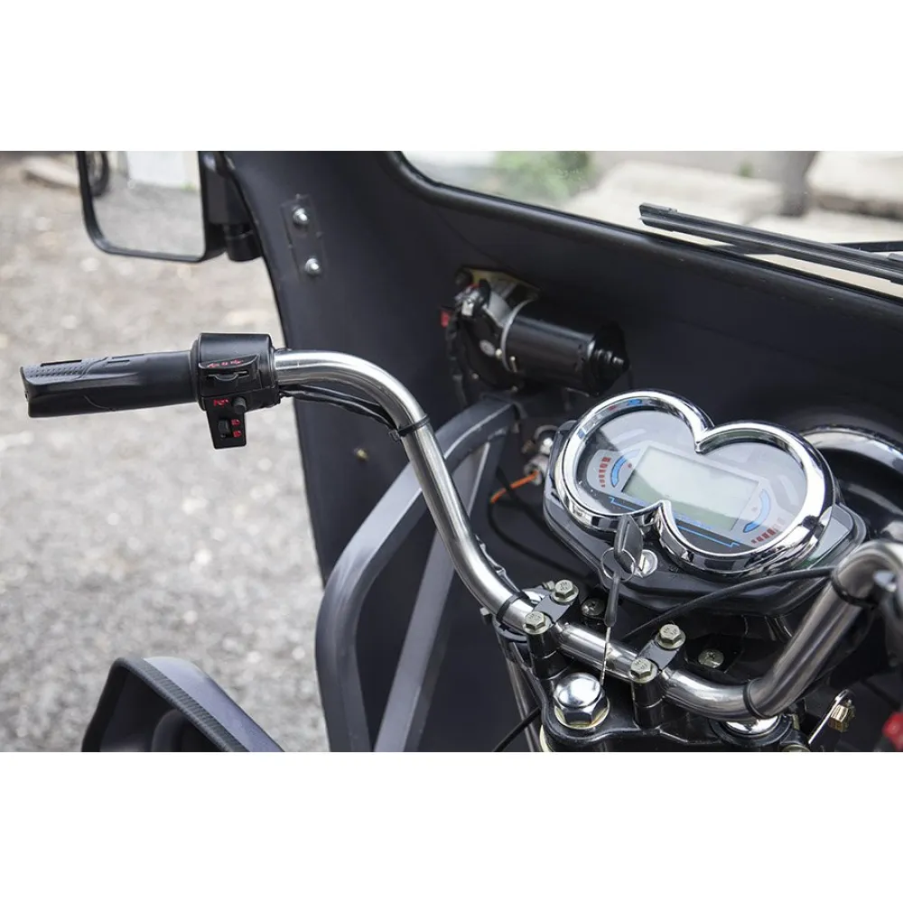 Усиленная конструкция рамы обеспечивает максимальную грузоподъемность до 500 кг. Оригинальность деталей и высокое качество сборки являются приоритетными для производителя. Модель оснащена мощным двигателем 1000 Вт. Емкий аккумулятор обеспечивает преодоление расстояния на одном заряде до 60 км. Улучшенные технические показатели позволяют развивать максимальную скорость до 25 км/час. Возможность размещения дополнительного аккумулятора делает технику универсальной и увеличивает автономность использования. Закрытая кабина транспортного средства является одним из существенных достоинств.