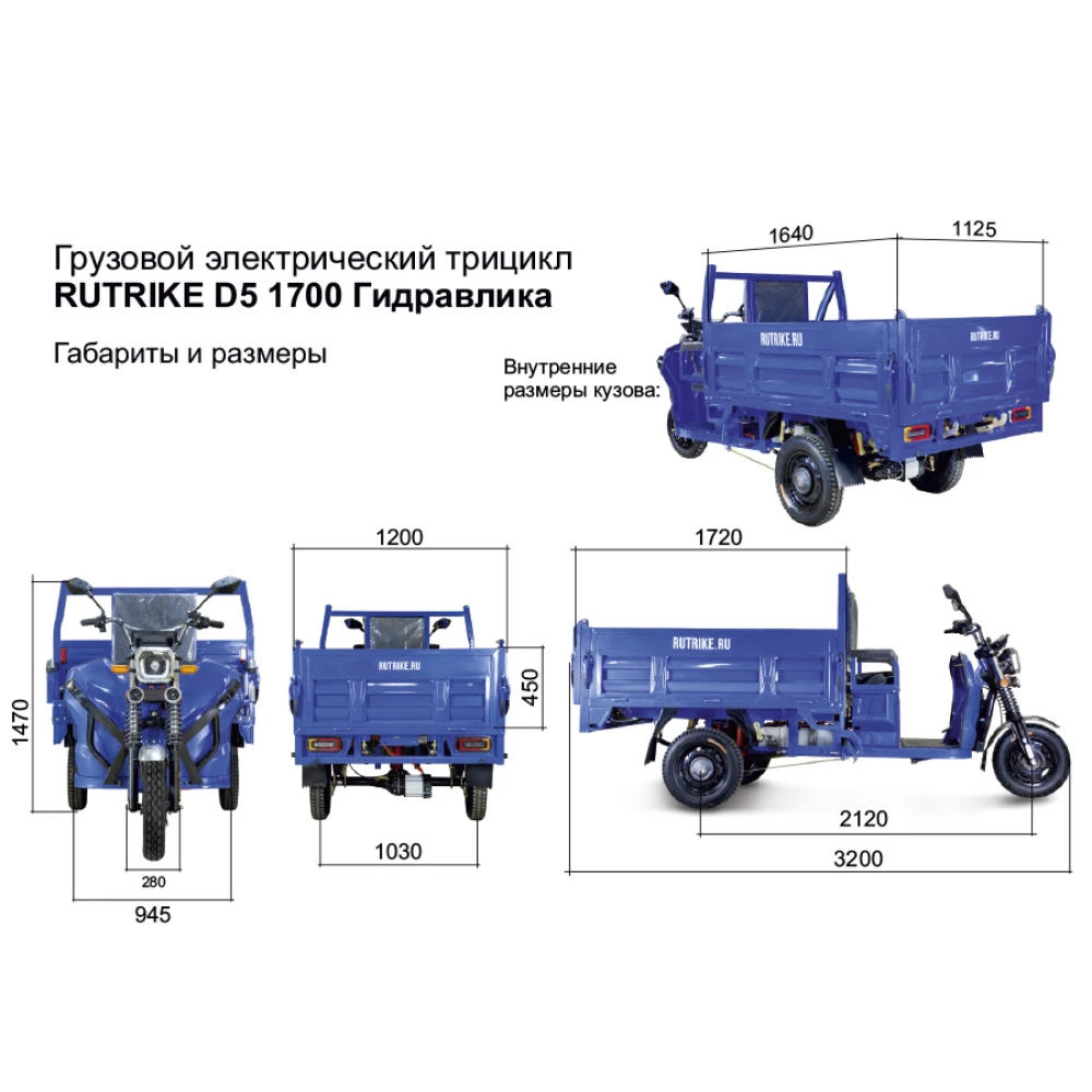 Грузовой электротрицикл Rutrike D5 1700 гидравлика в сером цвете - это современное и функциональное транспортное средство, предназначенное для перевозки тяжелых грузов. Его элегантный серый цвет придает ему профессиональный и современный вид.