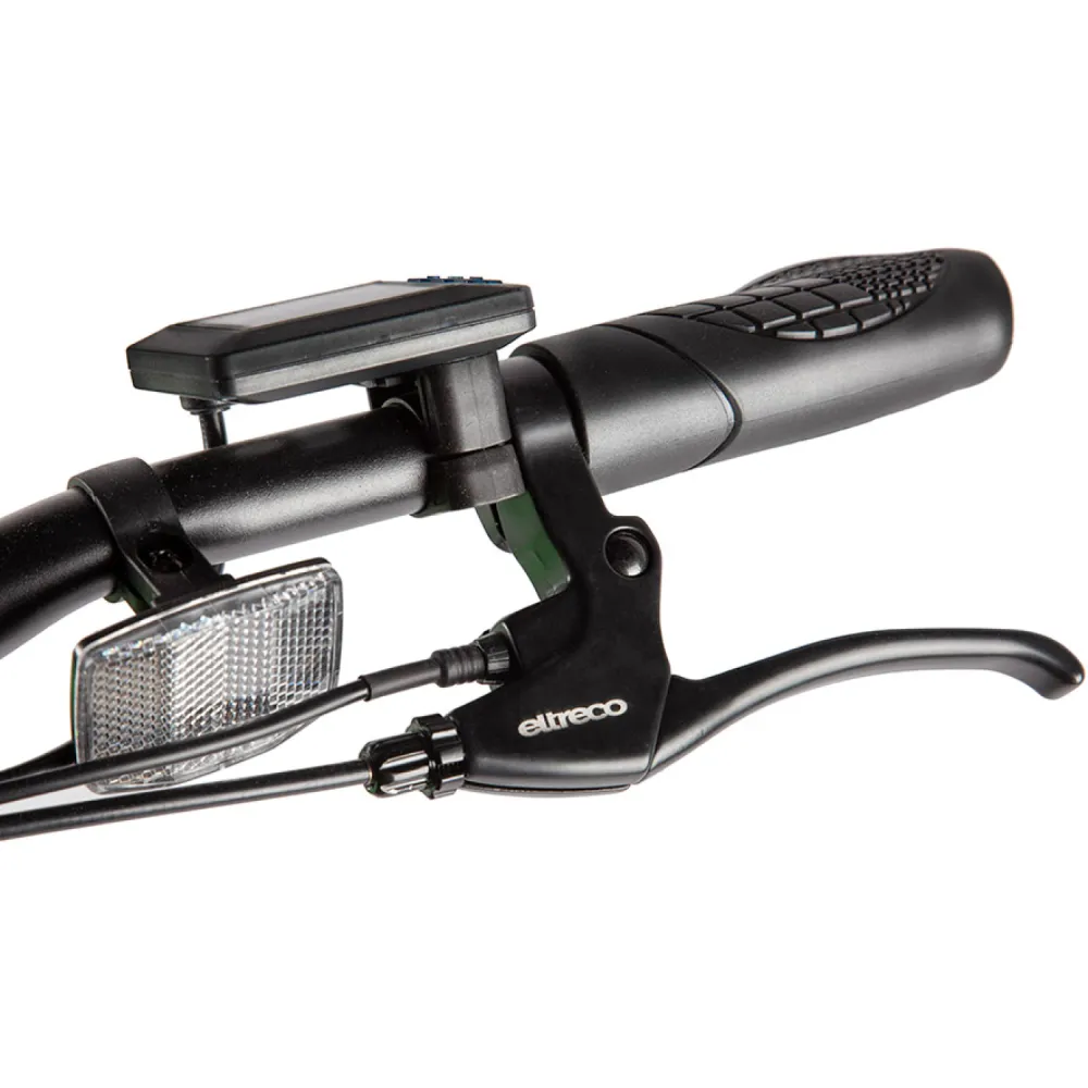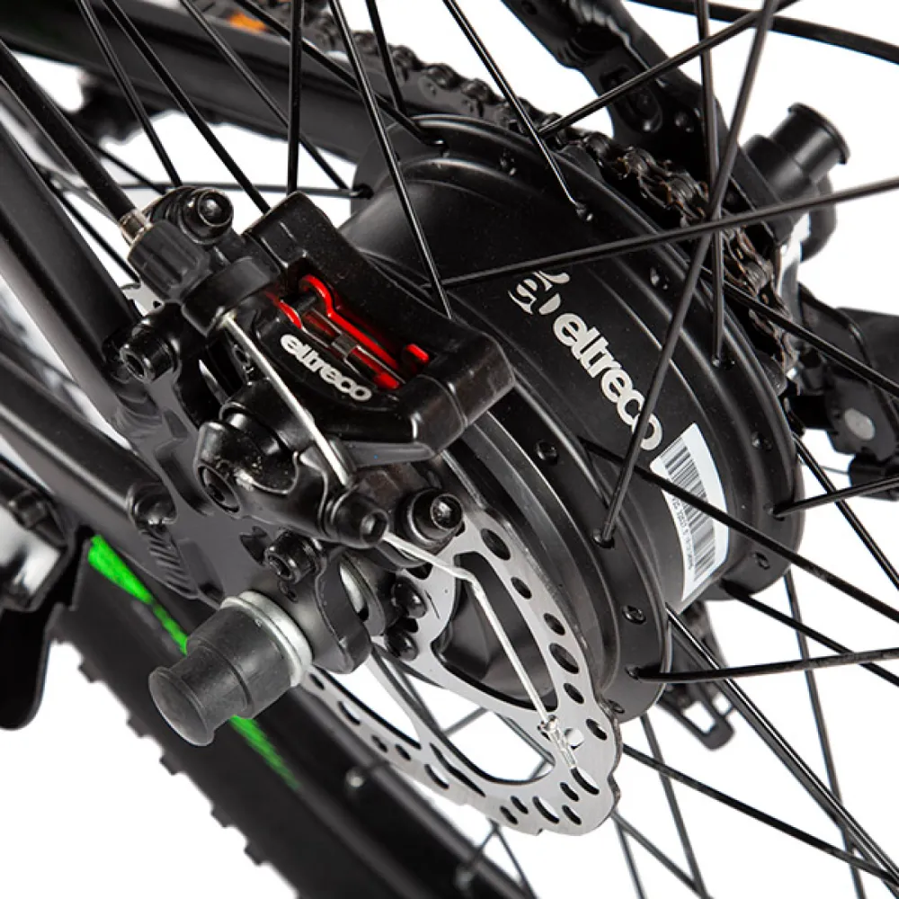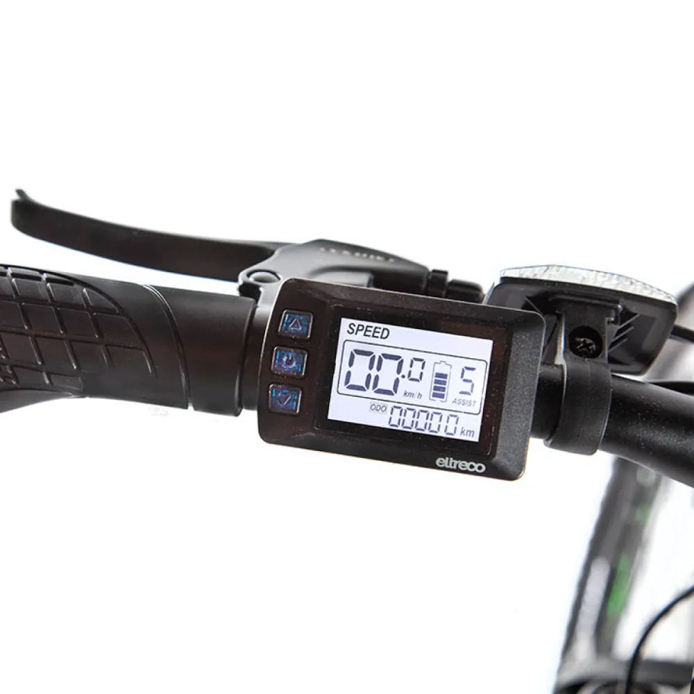 Мощная АКБ емкостью 36В 10Ач гарантирует преодоление расстояния до 50 км. Имея с собой подзарядку путешествие может стать более длительным. Фирменный электромотор Eltreco мощностью 350W в сочетании с надежной ручкой газа, колесами, обутыми во внедорожную резину обеспечат тягу, помогут преодолеть препятствия быстро и без проблем. Скоростные характеристики техники отображаются на жидкокристаллическом дисплее, который всегда перед глазами ездока.