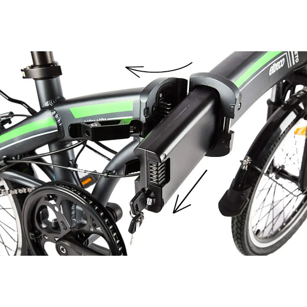 Над задним колесом расположен металлический багажник для надежной фиксации личных вещей. 20-дюймовые колеса повышают маневренность электровелосипеда, а амортизированная подвеска позволяет комфортно преодолевать неровности дороги. Велогибрид Eltreco LETO весит меньше 22 килограммов и имеет складную конструкцию. В сложенном виде данная модель настолько компактна, что без труда поместиться в пассажирском лифте или багажнике автомобиля.