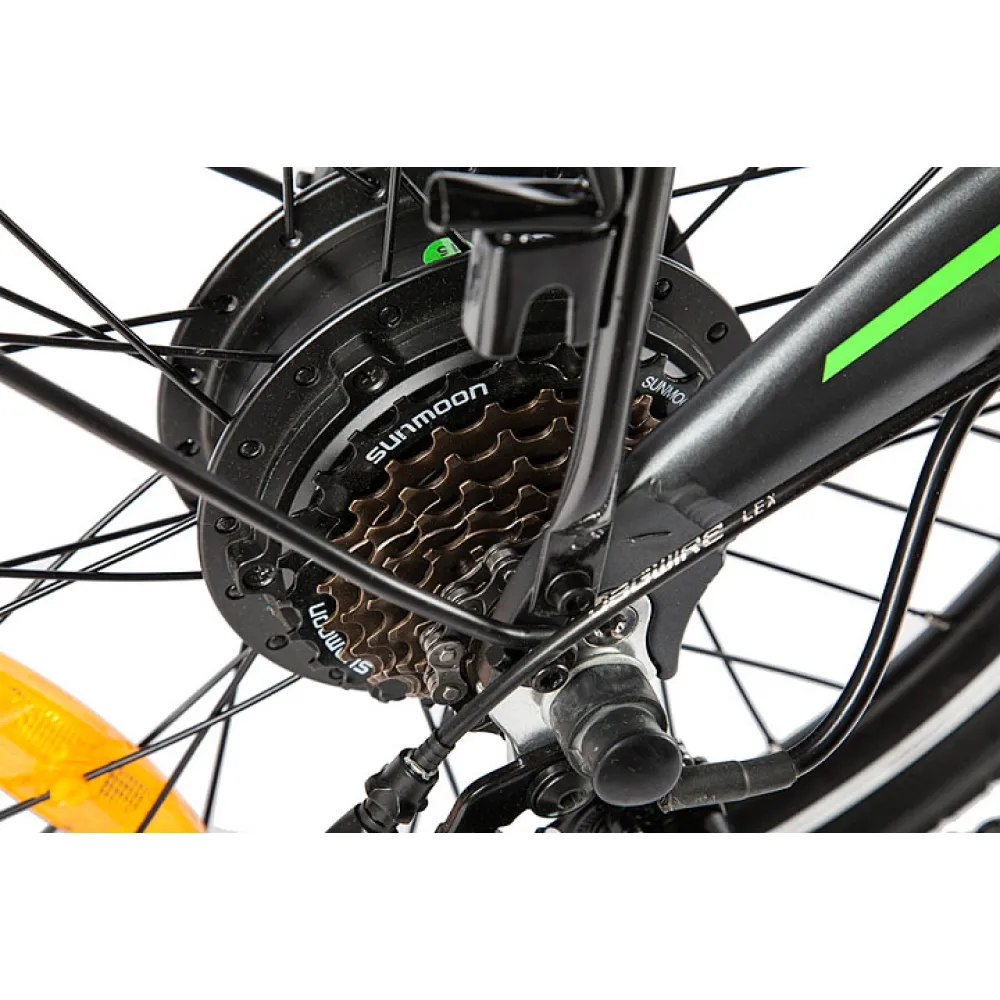 Литий-ионный аккумулятор интегрирован в раму и визуально не отягощает корпус велосипеда, но легко снимается для подзарядки. Емкость батареи обеспечивает запаса хода до 35 километров. Мощный двигатель позволяет развивать скорость 25-30 км/час, что вполне достаточно для быстрого, но безопасного передвижения по городу. Седло и руль имеют достаточно большой диапазон регулировки по высоте, что дает возможность настроить гибрид даже под пользователей очень высокого роста.