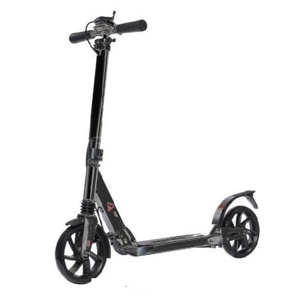Самокат BiBiTu Yoker 200 мм с ручным тормозом - это универсальное транспортное средство для взрослых и детей старше шести лет. Производители рекомендуют данную модель для пользователей ростом от 120 до 180 см - с помощью регулируемого по высоте руля самокат легко адаптируется под каждого райдера. Колёса диаметром 20 см выполнены из полиуретана и в сочетании с амортизаторами обеспечивают плавное равномерное движение даже на участках дороги с неровным покрытием или стыками. Качественные подшипники ABEC-7 делают поездку бесшумной, создавая дополнительный комфорт. Безопасность движения обеспечивает ручной тормоз с рычагом управления на руле, а также традиционный механический тормоз над задним колесом. Выбрав наиболее удобный для себя вариант, пользователь может в считанные секунды остановить самокат при возникновении препятствий на пути. В сложенном виде самокат обладает компактными размерами и его удобно выносить на прогулку и в случае необходимости брать с собой в общественный транспорт или салон автомобиля. Для удобства транспортировки самокат комплектуется специальным ремнём для переноски. Привлекательный современный дизайн делает каждую поездку не только комфортной и безопасной, но и приятной.