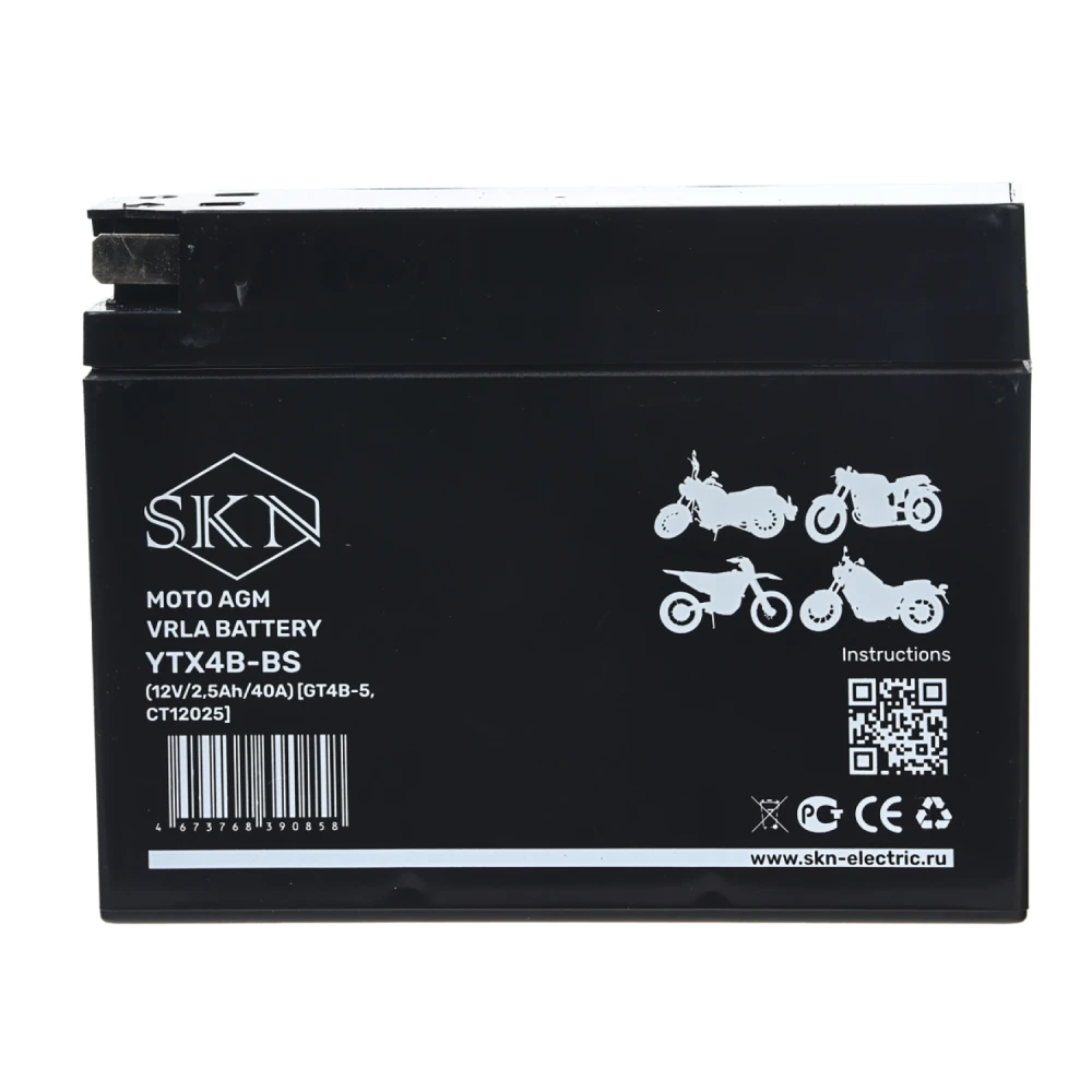 Аккумулятор стартерный для мототехники SKN YTX4B-BS (12V/2,5Ah/40A) [GT4B-5, CT 12025]